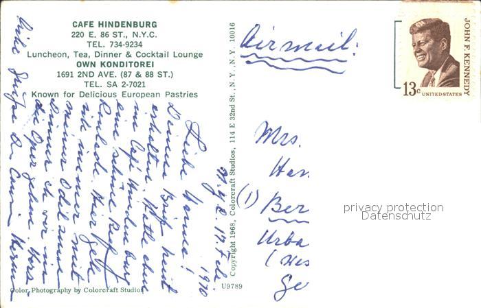 72219201 New York City Cafe Hindenurg Gastraum Bar postalisch nicht gelaufen Erhaltung siehe scans KatCode: 14140340000000