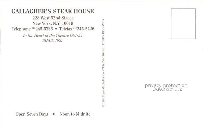 11686106 New York City Callghers Steak House West 52nd Street inside postalisch nicht gelaufen Erhaltung siehe scans KatCode: 14140340000000