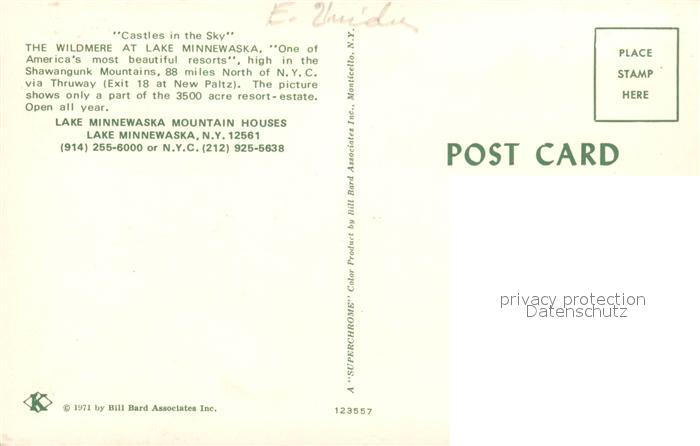 73057214 New York City Castles in the Sky The Wildmere at Lake Minnewaska postalisch nicht gelaufen Erhaltung siehe scans [WerneD78] KatCode: 14140340000000