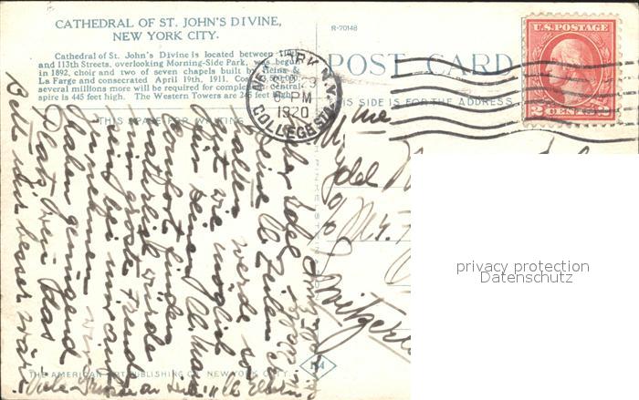 12020950 old postcard New York City Cathedral of St Johns Divine postalisch gelaufen KatCode: 14140340000000