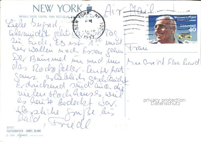 72597313 old postcard New York City Central Park postalisch gelaufen Erhaltung siehe scans [FriedD77] KatCode: 14140340000000