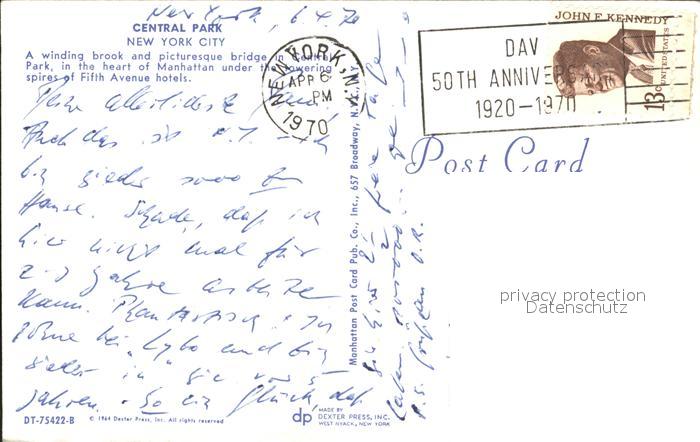 72306968 old postcard New York City Central Park postalisch gelaufen Erhaltung siehe scans KatCode: 14140340000000