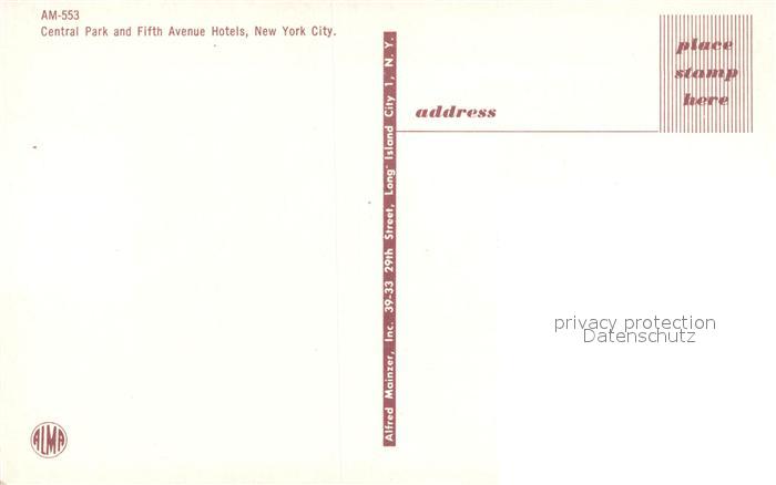 73513872 New York City Central Park and Fifth Avenue Hotels postalisch nicht gelaufen Erhaltung siehe scans [FriedD77] KatCode: 14140340000000