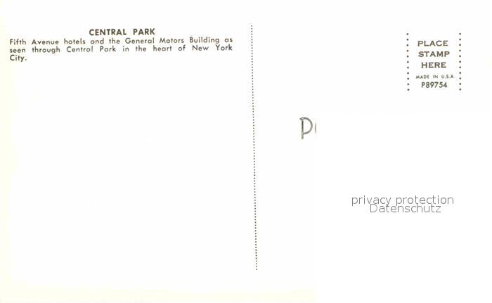 72908171 New York City Central Park Fith Avenue Hotels postalisch nicht gelaufen Erhaltung siehe scans [LiesaD40] KatCode: 14140340000000