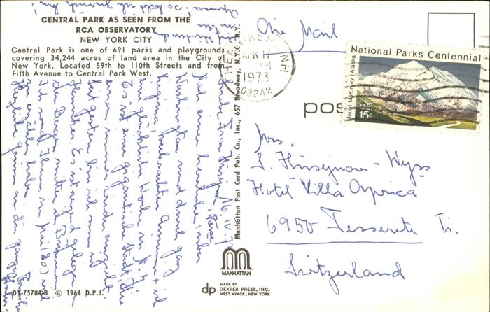 11491284 old postcard New York City Central Park seen from RCA Observatory postalisch gelaufen Erhaltung siehe scans KatCode: 14140340000000