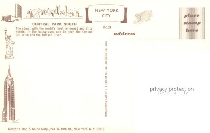 73127964 New York City Central Park South postalisch nicht gelaufen Erhaltung siehe scans [KathaD81] KatCode: 14140340000000