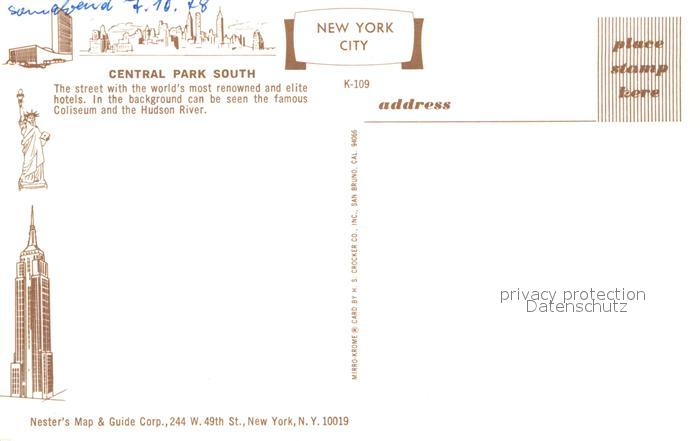 72948600 New York City Central Park South postalisch nicht gelaufen Erhaltung siehe scans [NatalD47] KatCode: 14140340000000