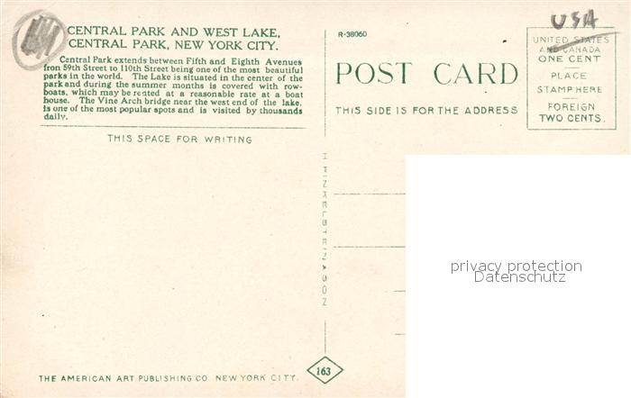 73588853 New York City Central Park West and Lake postalisch nicht gelaufen Erhaltung siehe scans [FriedD77] KatCode: 14140340000000