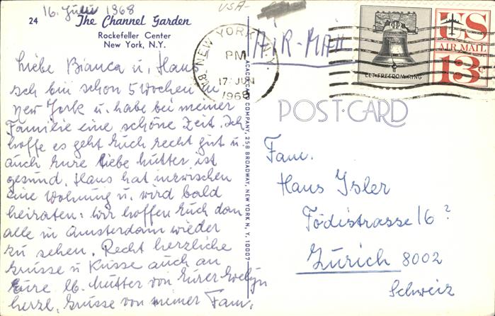 11491618 old postcard New York City Channel Garden Rockefeller Center postalisch gelaufen Erhaltung siehe scans KatCode: 14140340000000