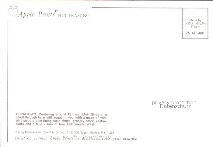 72556533 New York City Chinatown postalisch nicht gelaufen Erhaltung siehe scans [AndreD76] KatCode: 14140340000000