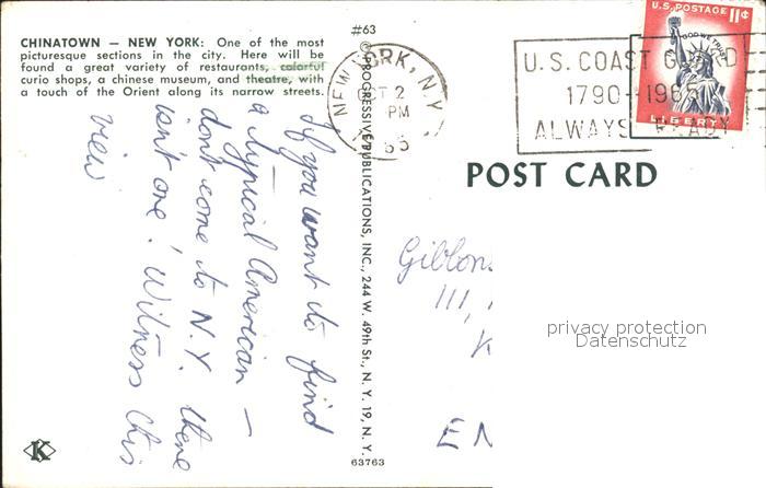 72229965 old postcard New York City Chinatown postalisch gelaufen Erhaltung siehe scans KatCode: 14140340000000