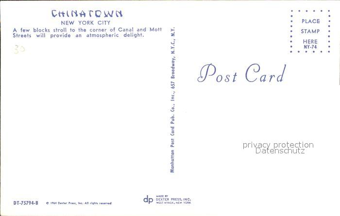 11688417 New York City Chinatown postalisch nicht gelaufen Erhaltung siehe scans KatCode: 14140340000000