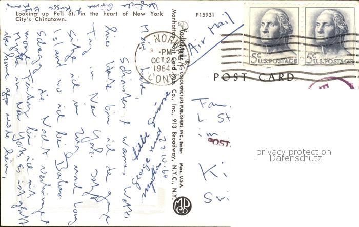 11686284 old postcard New York City Chinatown postalisch gelaufen Erhaltung siehe scans KatCode: 14140340000000