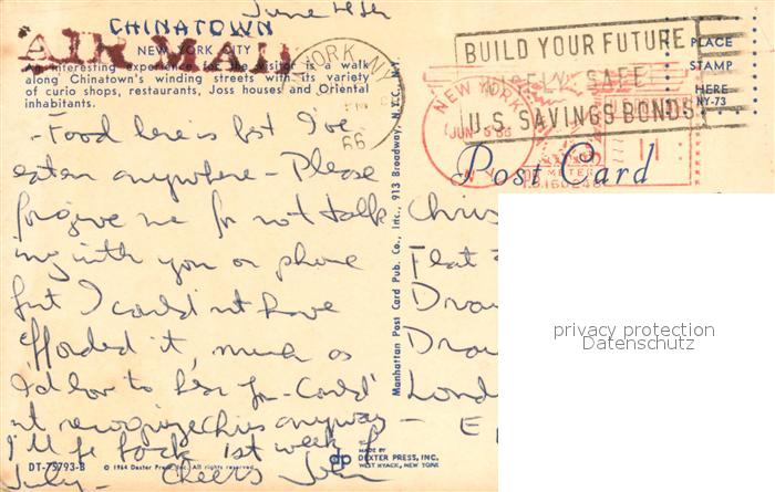 73061557 old postcard New York City Chinatown postalisch gelaufen Erhaltung siehe scans [WerneD78] KatCode: 14140340000000