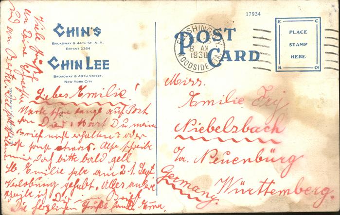11321282 old postcard New York City Chin’s Restaurant postalisch gelaufen gute Erhaltung KatCode: 14140340000000