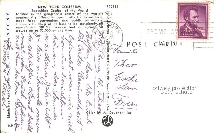 72434029 old postcard New York City Cliseum Expostitin Capital of the World postalisch gelaufen Erhaltung siehe scans KatCode: 14140340000000