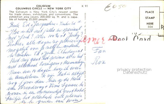 72289666 New York City Coliseum Columbus Circle postalisch nicht gelaufen Erhaltung siehe scans KatCode: 14140340000000