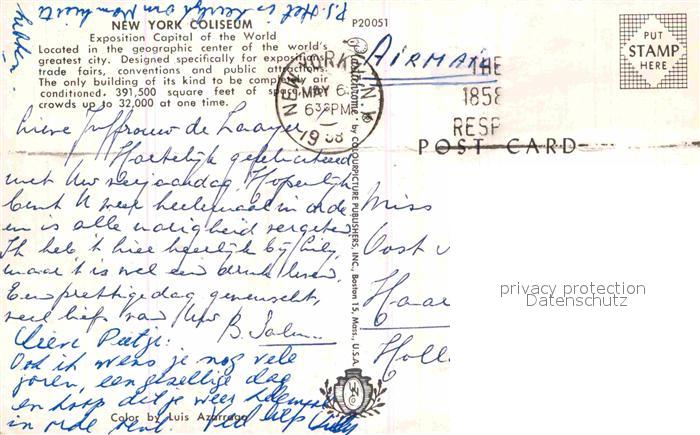 72902873 old postcard New York City Coliseum postalisch gelaufen Erhaltung siehe scans [FriedD77] KatCode: 14140340000000