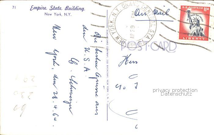 11686130 old postcard New York City Empire Stat Building postalisch gelaufen Erhaltung siehe scans KatCode: 14140340000000