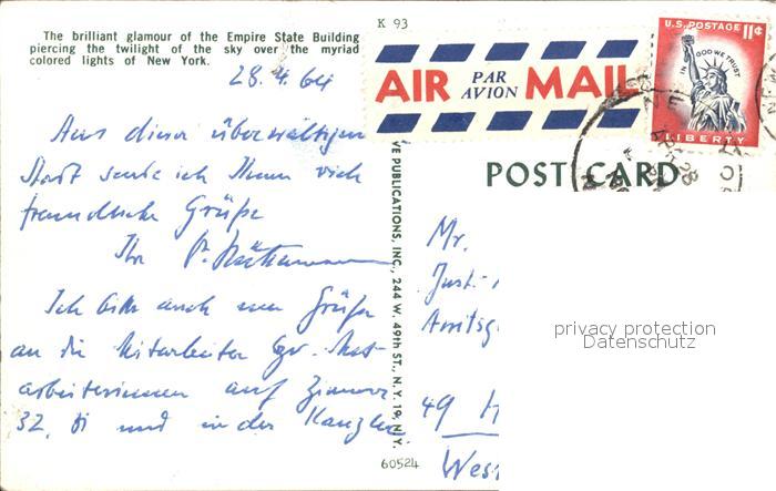 72606453 old postcard New York City Empire State Building postalisch gelaufen Erhaltung siehe scans [NatalD47] KatCode: 14140340000000
