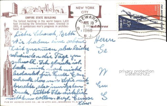 72306961 old postcard New York City Empire State Building postalisch gelaufen Erhaltung siehe scans KatCode: 14140340000000