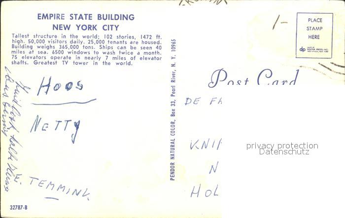 72272892 old postcard New York City Empire State Building postalisch gelaufen Erhaltung siehe scans KatCode: 14140340000000