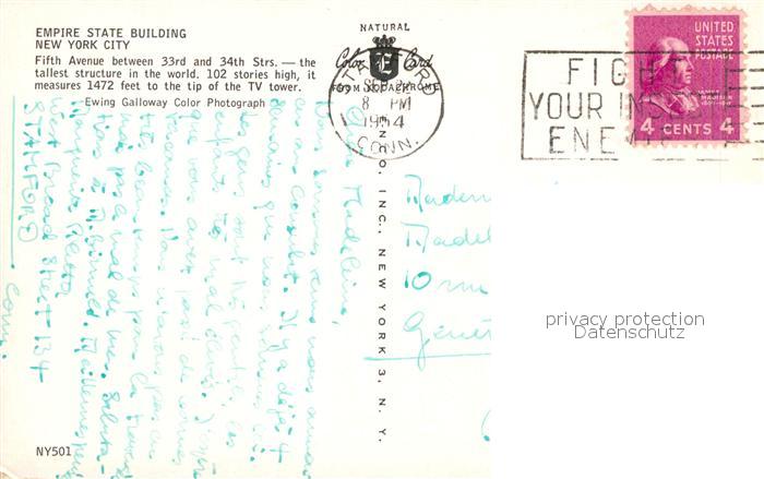 72944719 old postcard New York City Empire State Building postalisch gelaufen Erhaltung siehe scans [WerneD78] KatCode: 14140340000000