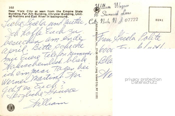 73123042 New York City Empire State Building Pan Am Building Chrysler Building East River postalisch nicht gelaufen Erhaltung siehe scans [KathaD81] KatCode: 14140340000000