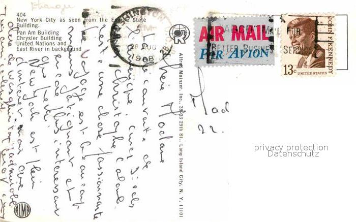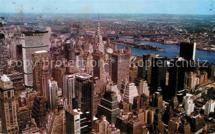 72614758 old postcard New York City Empire State Building PanAm Bldg Chrysler Bldg United Nations and East River postalisch gelaufen Erhaltung siehe scans [WerneD78] KatCode: 14140340000000