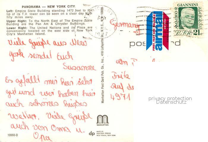 72935479 old postcard New York City Empire State Building PanAm und Chrysler Buildings Skyline postalisch gelaufen Erhaltung siehe scans [WerneD78] KatCode: 14140340000000