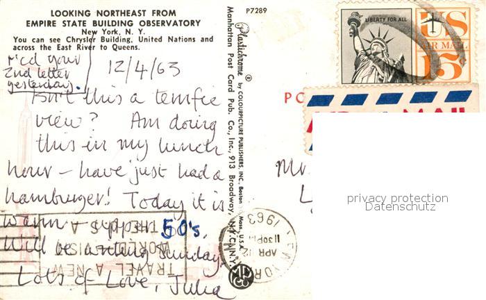 73130024 old postcard New York City Empire State Buildung Observatory postalisch gelaufen Erhaltung siehe scans [KathaD81] KatCode: 14140340000000