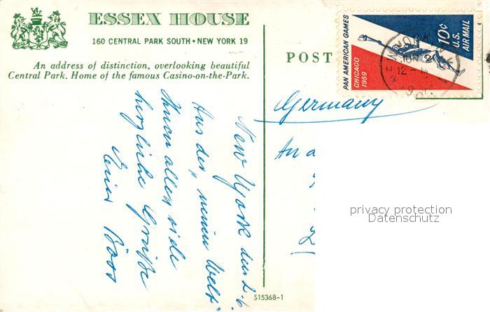 73277723 old postcard New York City Essex House postalisch gelaufen Erhaltung siehe scans [LiesaD40] KatCode: 14140340000000