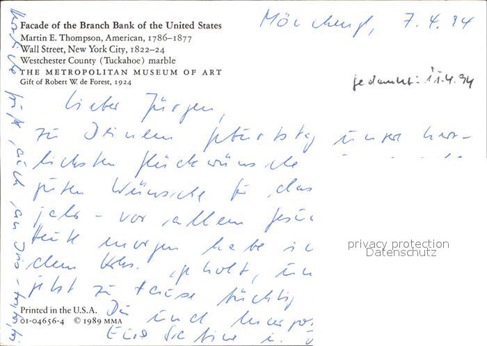 72499916 New York City Facade of the Branch Bank of the United States postalisch nicht gelaufen Erhaltung siehe scans KatCode: 14140340000000