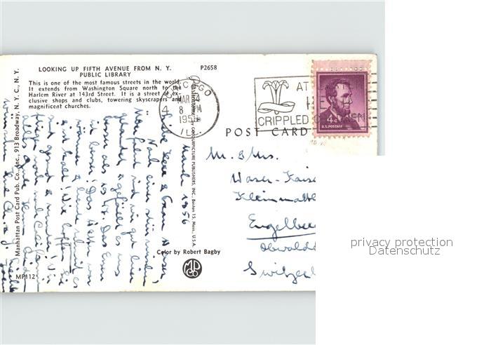 72389984 old postcard New York City Fifth Avenue from Public Library postalisch gelaufen Erhaltung siehe scans KatCode: 14140340000000