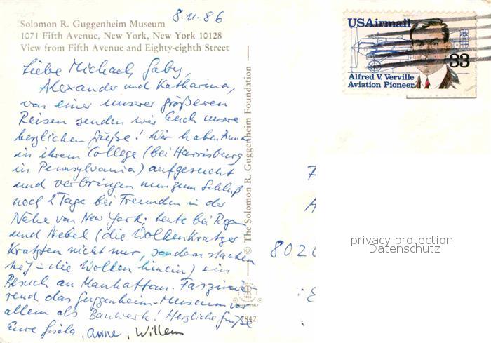 72650539 old postcard New York City Fifth Avenue Guggenheim-Museum postalisch gelaufen Erhaltung siehe scans [LiesaD40] KatCode: 14140340000000