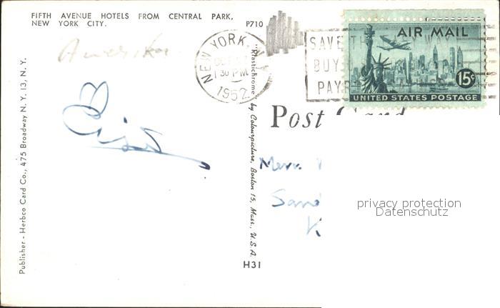 72323530 old postcard New York City Fifth Avenue Hotels postalisch gelaufen Erhaltung siehe scans KatCode: 14140340000000