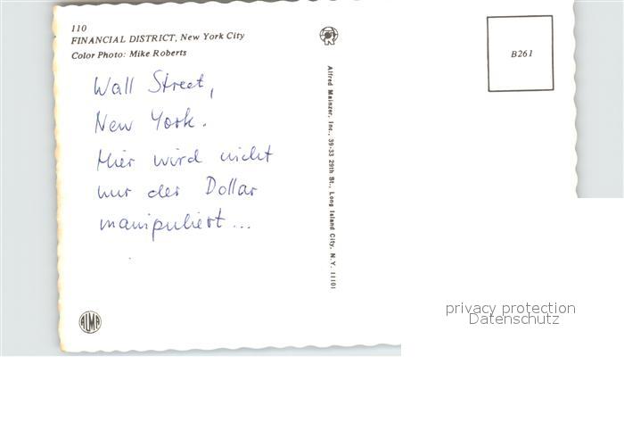 72527568 New York City Financial District postalisch nicht gelaufen Erhaltung siehe scans KatCode: 14140340000000