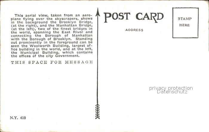 11693286 New York City Fliegeraufnahme Brooklyn and Manhattan Bridges East River postalisch nicht gelaufen Erhaltung siehe scans KatCode: 14140340000000