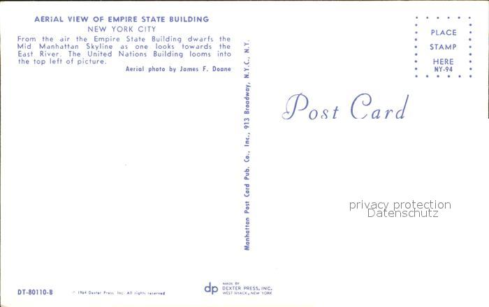 11693301 New York City Fliegeraufnahme Empire Stat Building Skyline postalisch nicht gelaufen Erhaltung siehe scans KatCode: 14140340000000