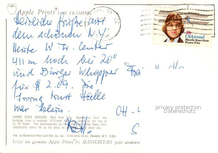 73162141 old postcard New York City Fliegeraufnahme Empire Stat Building Skyline postalisch gelaufen Erhaltung siehe scans [LiesaD40] KatCode: 14140340000000