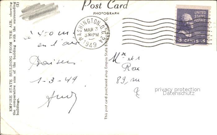 71991006 old postcard New York City Fliegeraufnahme Empire State Building postalisch gelaufen Erhaltung siehe scans KatCode: 14140340000000