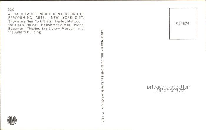 72091458 New York City Fliegeraufnahme Lincoln Center Performing Arts postalisch nicht gelaufen Erhaltung siehe scans KatCode: 14140340000000