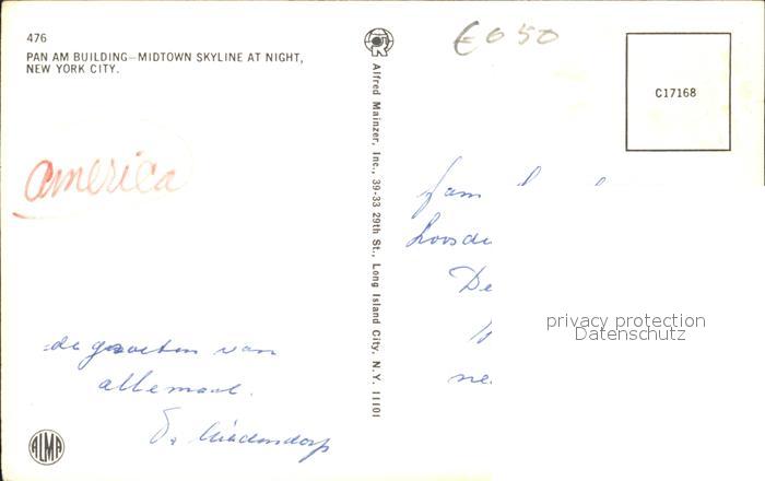 72285189 New York City Fliegeraufnahme PAN AM Building Skyline at night postalisch nicht gelaufen Erhaltung siehe scans KatCode: 14140340000000