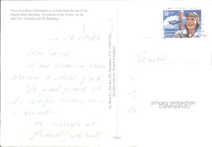 72327910 old postcard New York City Fliegeraufnahme Skyline postalisch gelaufen Erhaltung siehe scans KatCode: 14140340000000