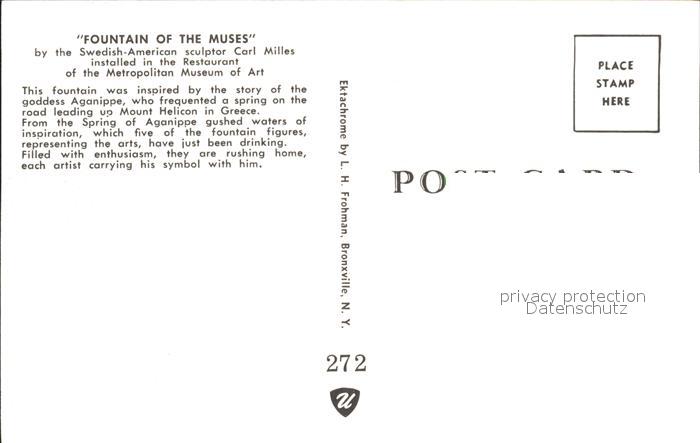 71942244 New York City Fountain of the Muses of the Metropolitan Museum of Art postalisch nicht gelaufen KatCode: 14140340000000