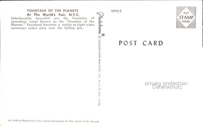71969285 New York City Fountain Planets Worlds Fair postalisch nicht gelaufen Erhaltung siehe scans KatCode: 14140340000000