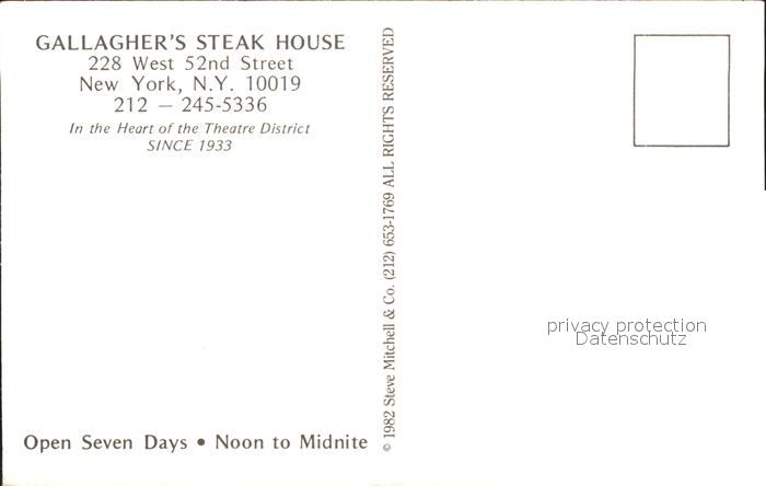 71919088 New York City Gallagherss Steak House postalisch nicht gelaufen Erhaltung siehe scans KatCode: 14140340000000