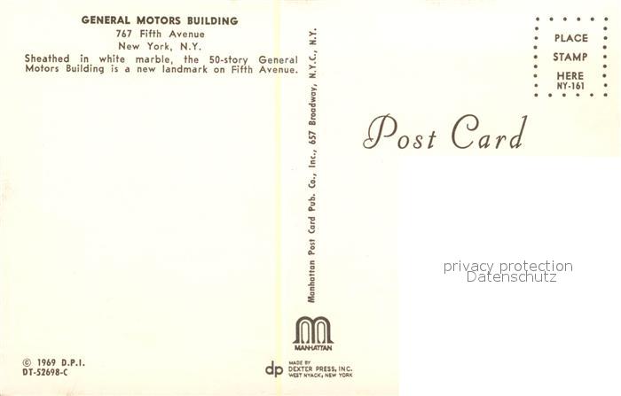 73130756 New York City General Motors Building Fifth Avenue Skyscraper postalisch nicht gelaufen Erhaltung siehe scans [FriedD77] KatCode: 14140340000000