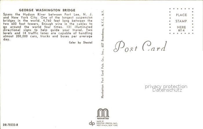 72316439 New York City George Washinton Bridge postalisch nicht gelaufen Erhaltung siehe scans KatCode: 14140340000000