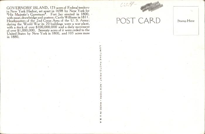 11491635 New York City Governor’s Island South Ferry New York Harbor postalisch nicht gelaufen Erhaltung siehe scans KatCode: 14140340000000